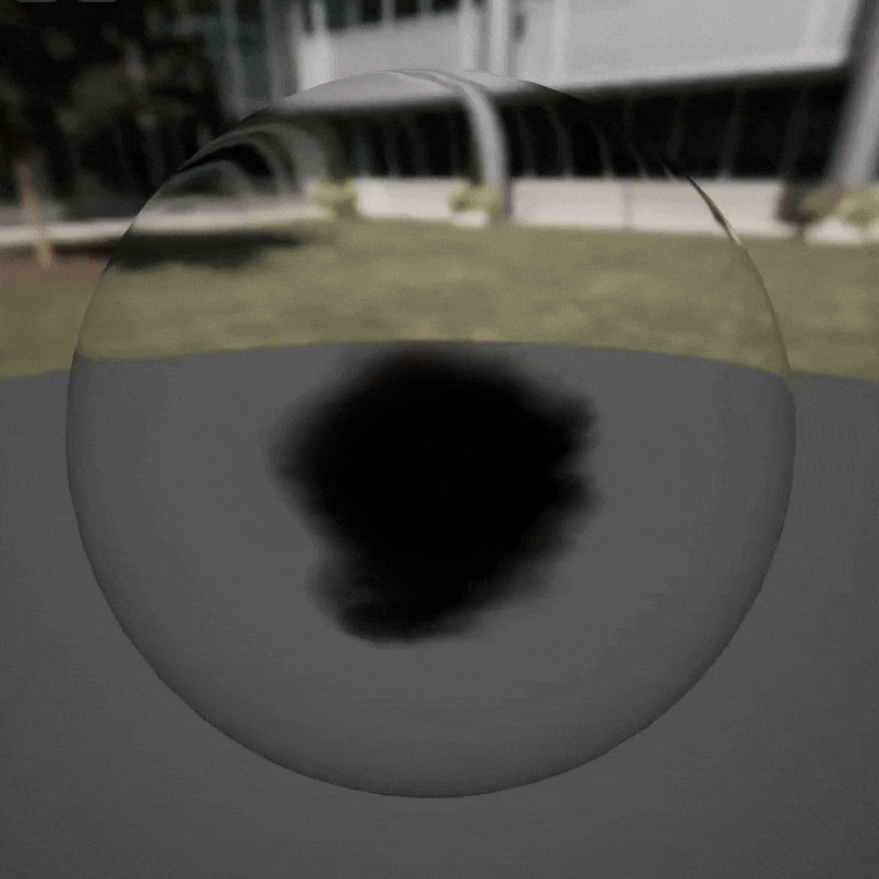 The Material is animated through noise movement and the fresnel gradient’s normal. A single input parameter animates the intensity by increasing an emissive layer, flashes and jittering movement. A MPC parameter is used as a user accessibility setting to disable the flashing effects!