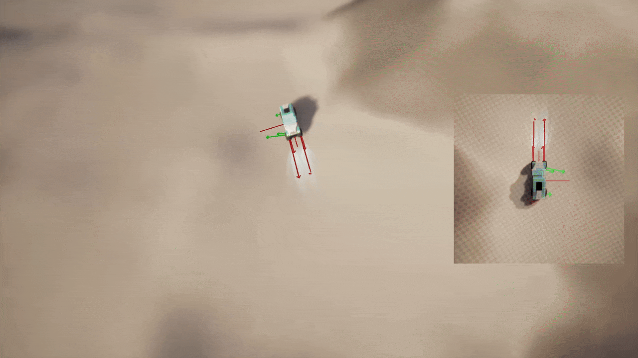 ADRIFT’s vehicle is controlled using a custom build physics setup. This decision was made after prototypes with existing setups (such as UE’s Chaos Vehicle) were easy in their initial setup but difficult and unpredictable in iteration to achieve the desired game feel.